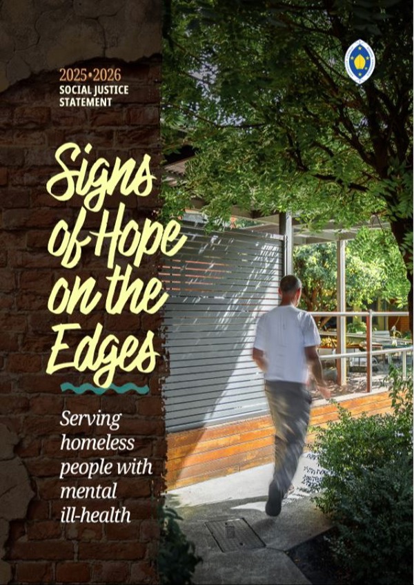 The 2025-2026 Social Justice statement statement is "Signs of Hope on the Edge: Serving Homeless People with Mental Ill-Health".